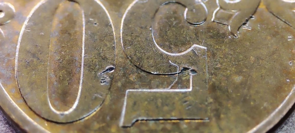 Монета номиналом 50 копеек 2008 М в количестве 1шт (магнитная). С обильным засором штемпеля реверса