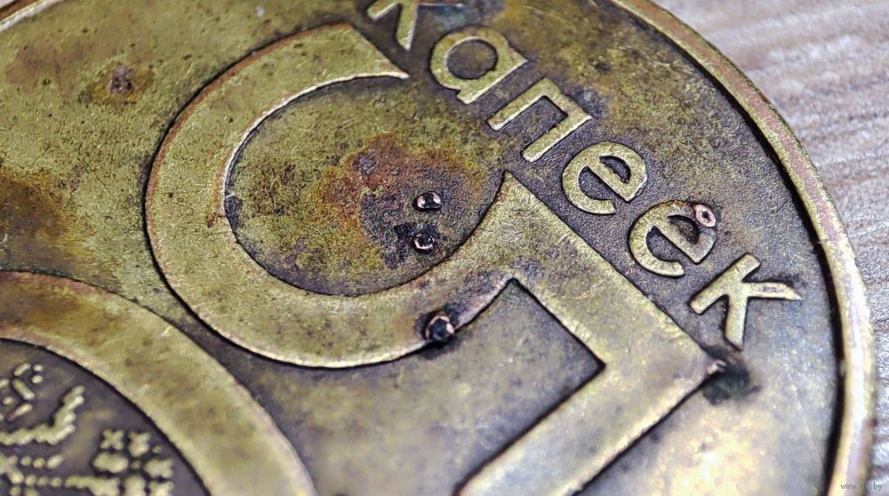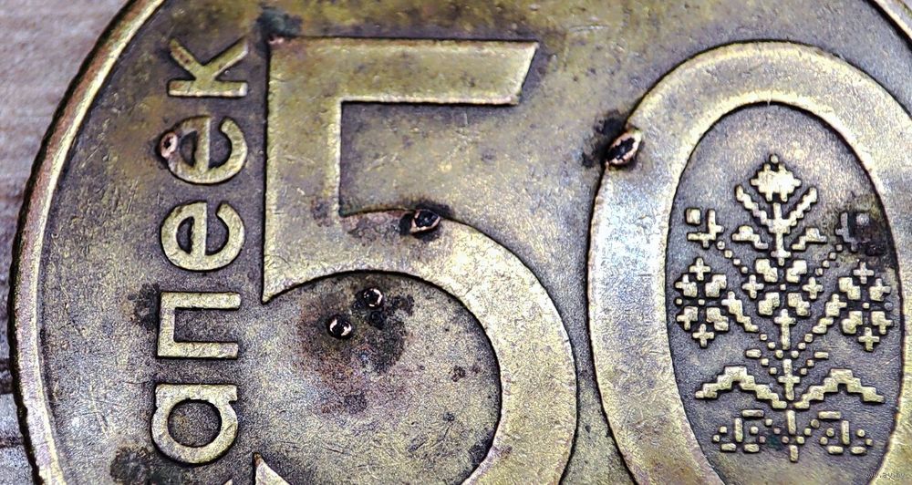 50 копеек 2009 год Республика Беларусь в количестве-1шт, магнитная. Полопавшиеся вздутия плакировки реверса
