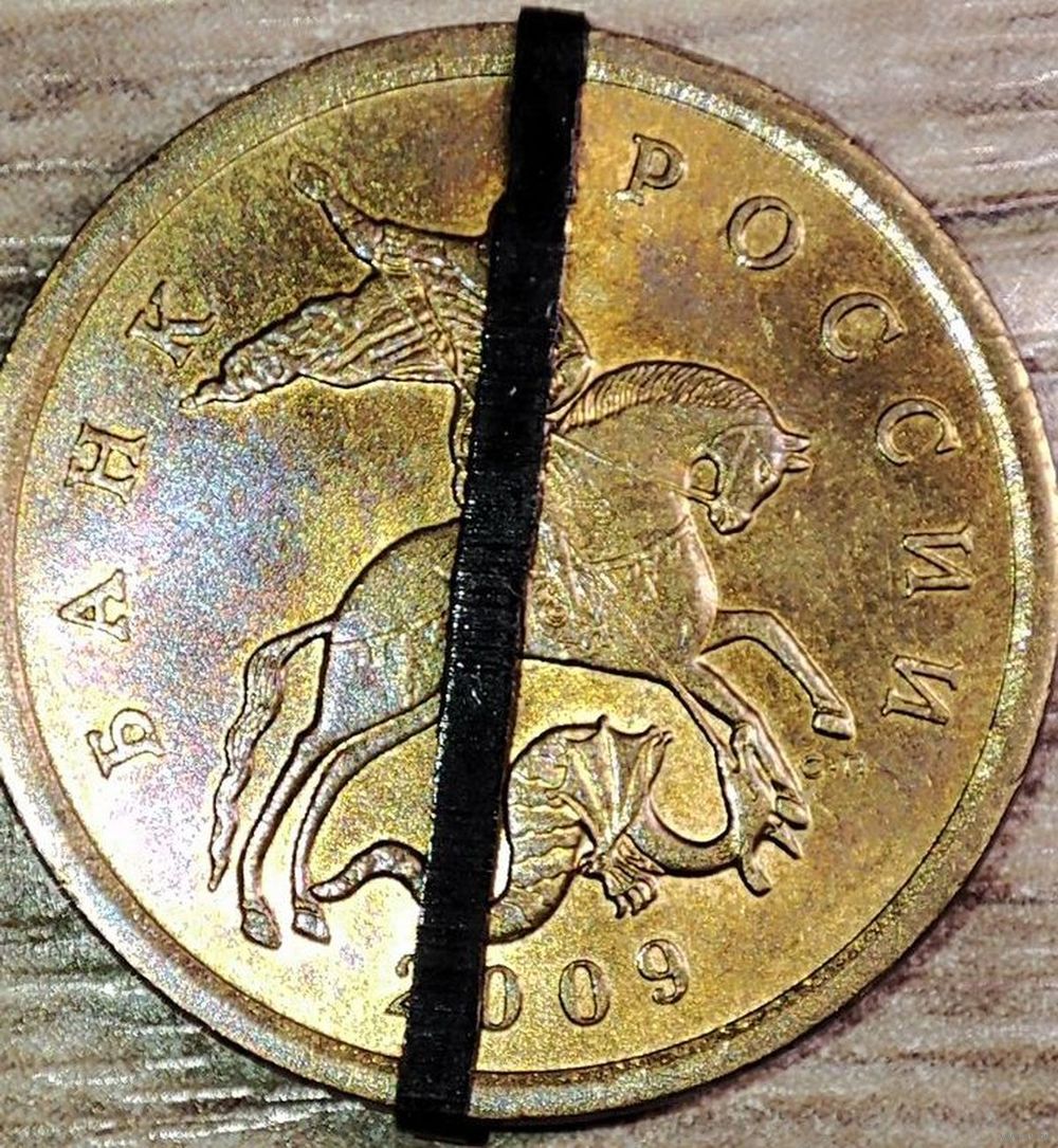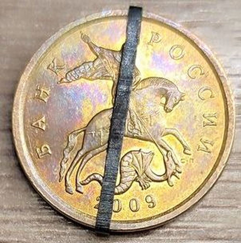 Монета номиналом 50 копеек 2009 С-П в количестве - 1шт. Несоосность аверса и реверса около 10°