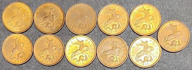 Лот монет номинала 50 копеек 2010 С-П в количестве 11шт (все магнитные)