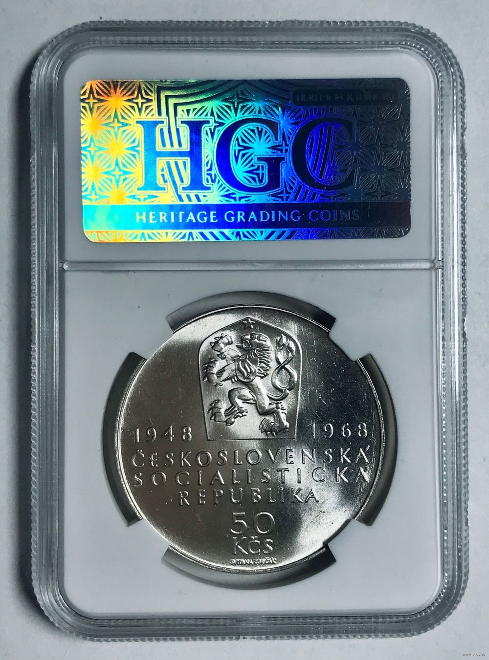 50 крон 1968 независимость ms 66 серебро Чехословакии нечастая
