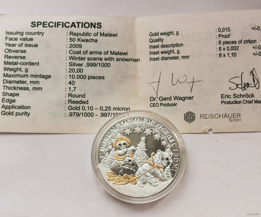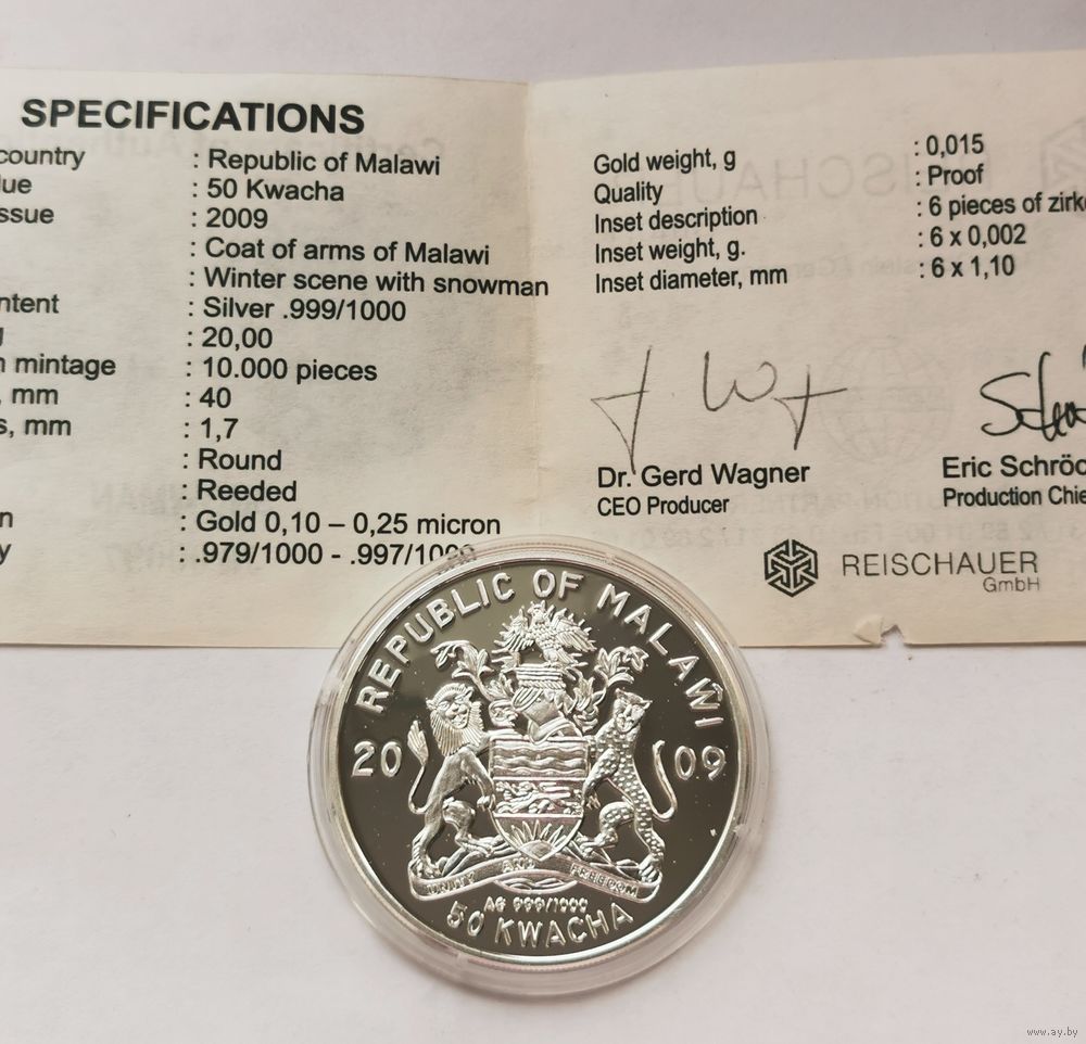 50 квач 2009 г. Новый Год, рождество. С рубля. Малави.