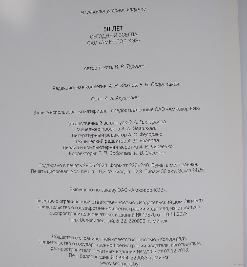 50 лет. Сегодня и всегда. ОАО "Амкодор-КЭЗ" Автор текста И. В. Турович. Минск : Сегмент, 2024 г. 86 с. Твердый переплет. Увелич формат.