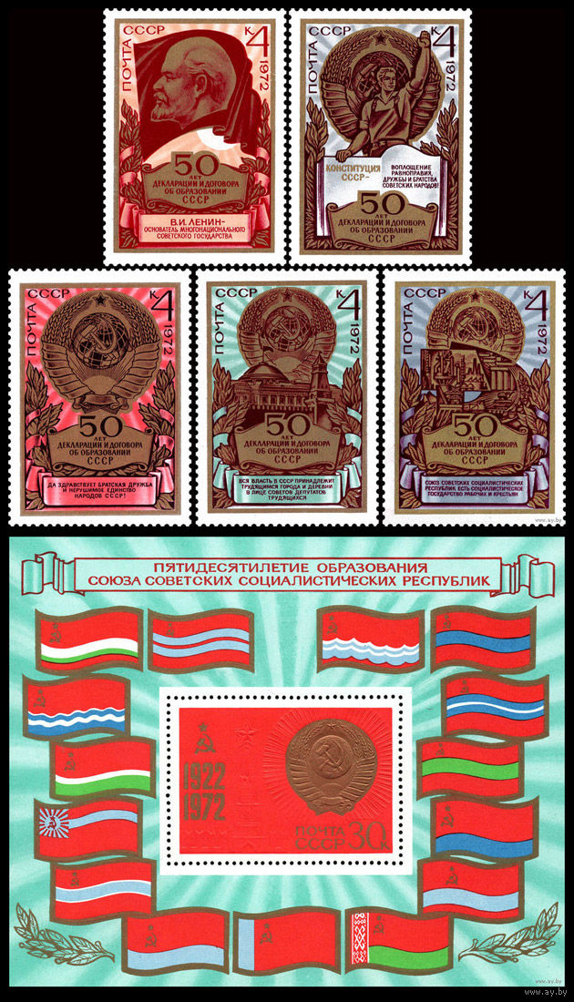 50-летие образования СССР. 1972. Полная серия 5 марок + блок. Чистые