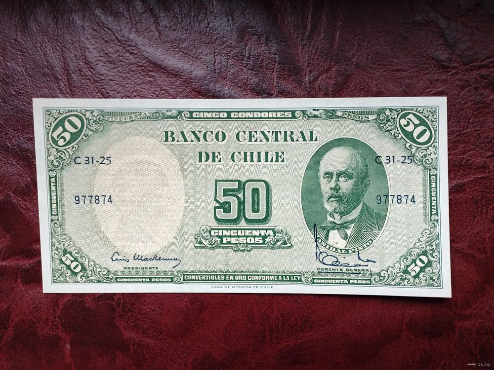 50 песо Чили. Надпечатка 5 сентесимо.