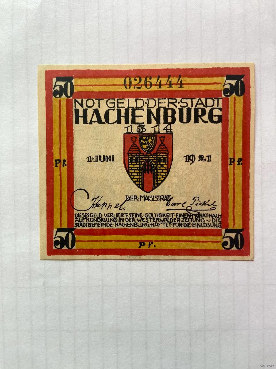 50 пфенигов (нотгельды) Германия г.Хаченбург -1402