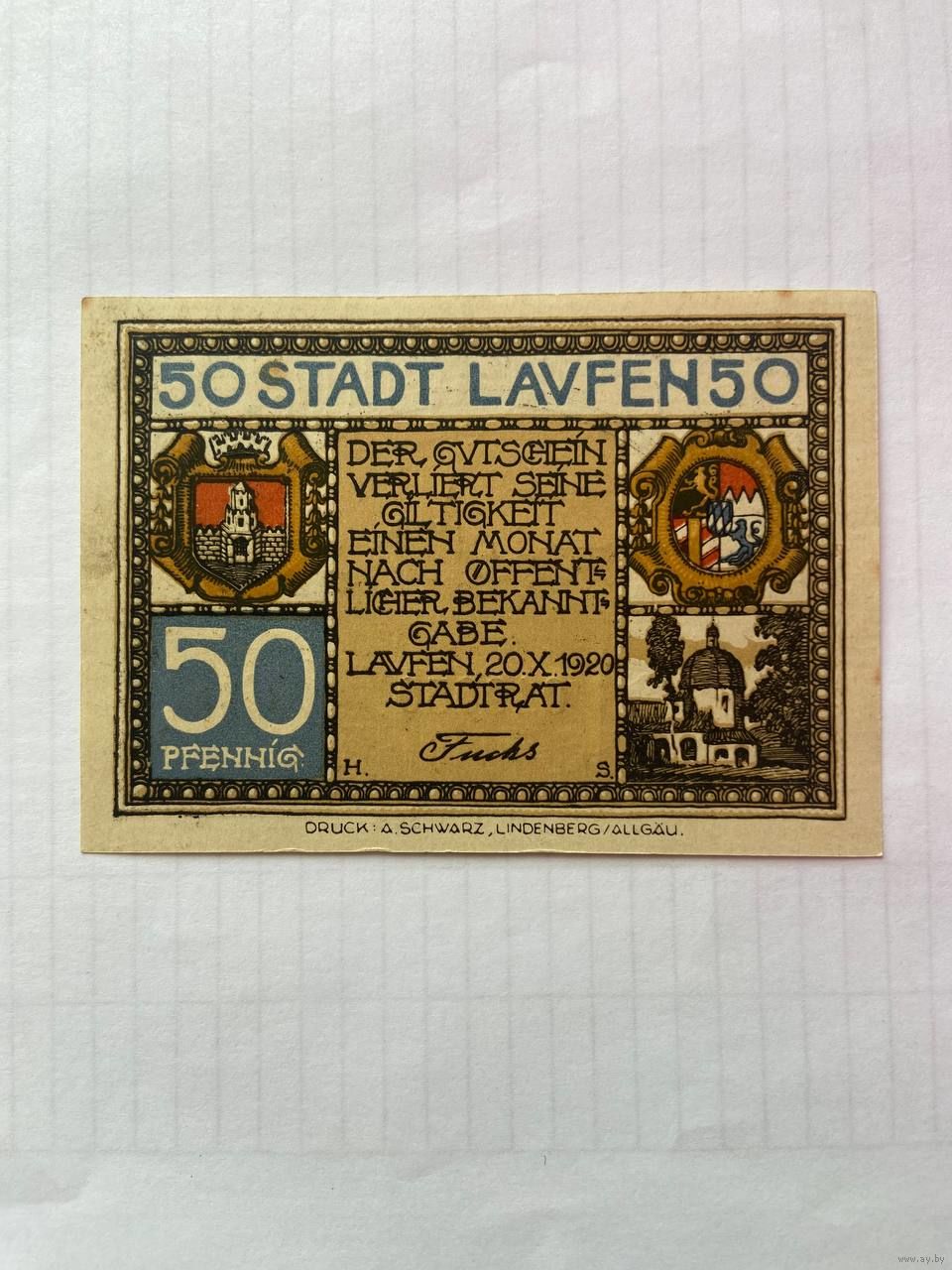50 пфенигов (нотгельды) Германия г.Лавфен -1402