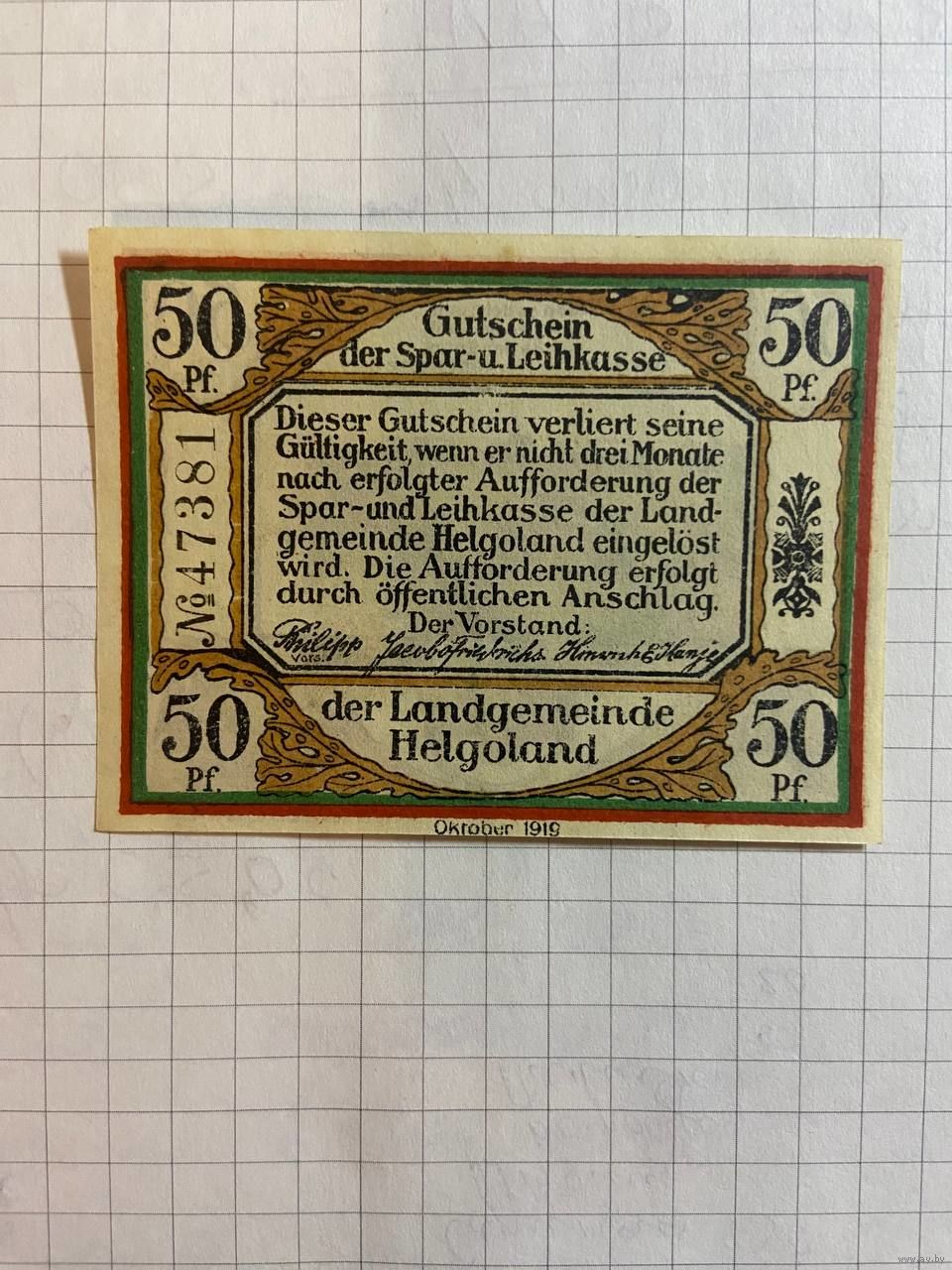 50 пфеннингов (нотгельды) г. Германия.