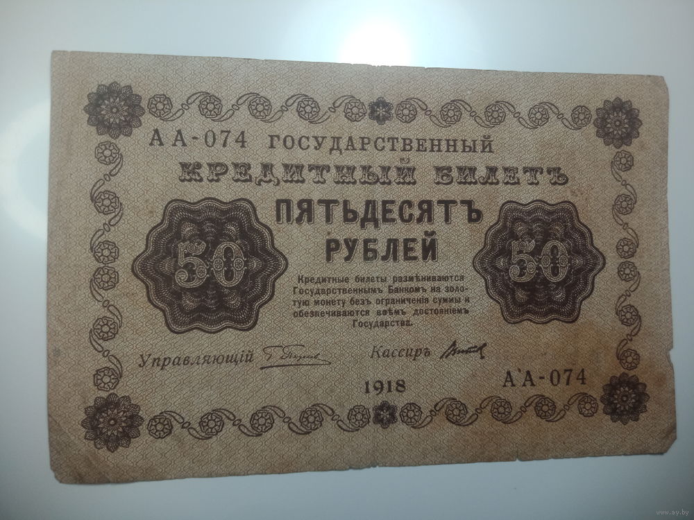 50 рублей 1918 года , Кассир Титов , АА - 074