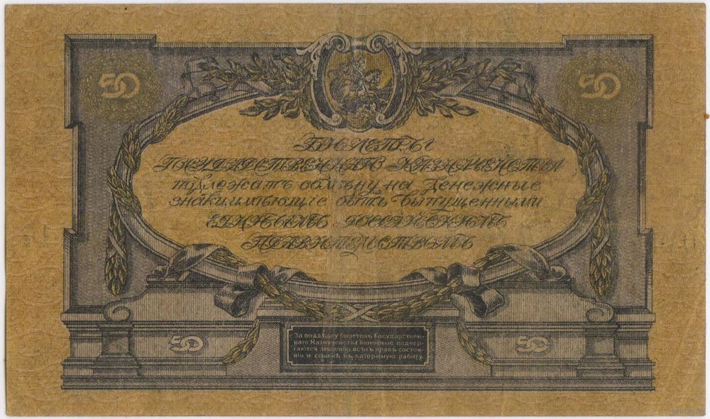 50 рублей 1919 год. ГКВС. Главное Командование Вооруженными силами на Юге России.. XF!