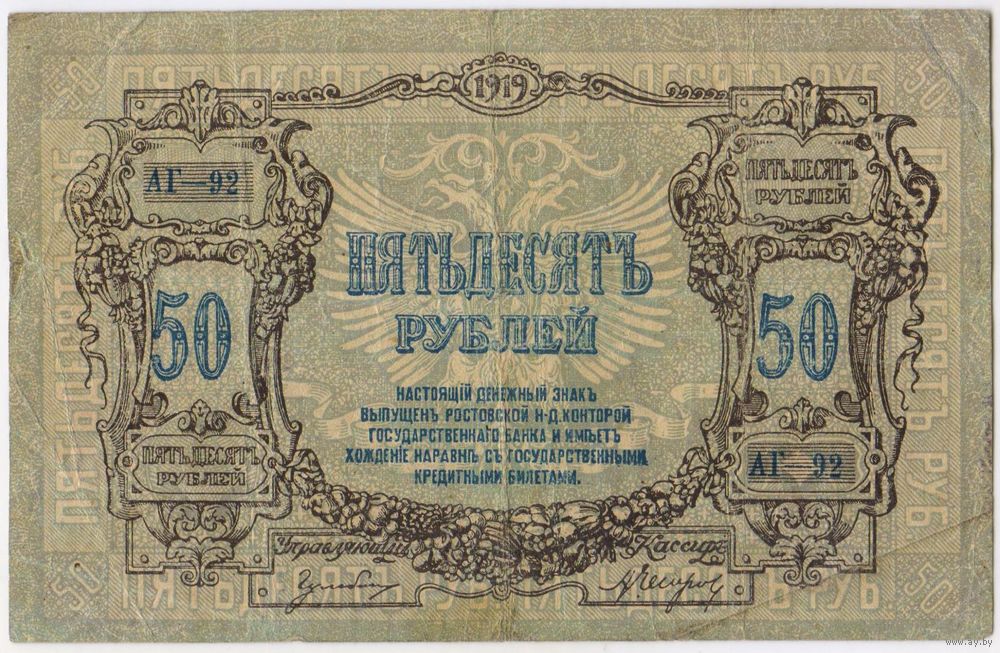 50 рублей 1919 год. РОСТОВ. АГ-92.