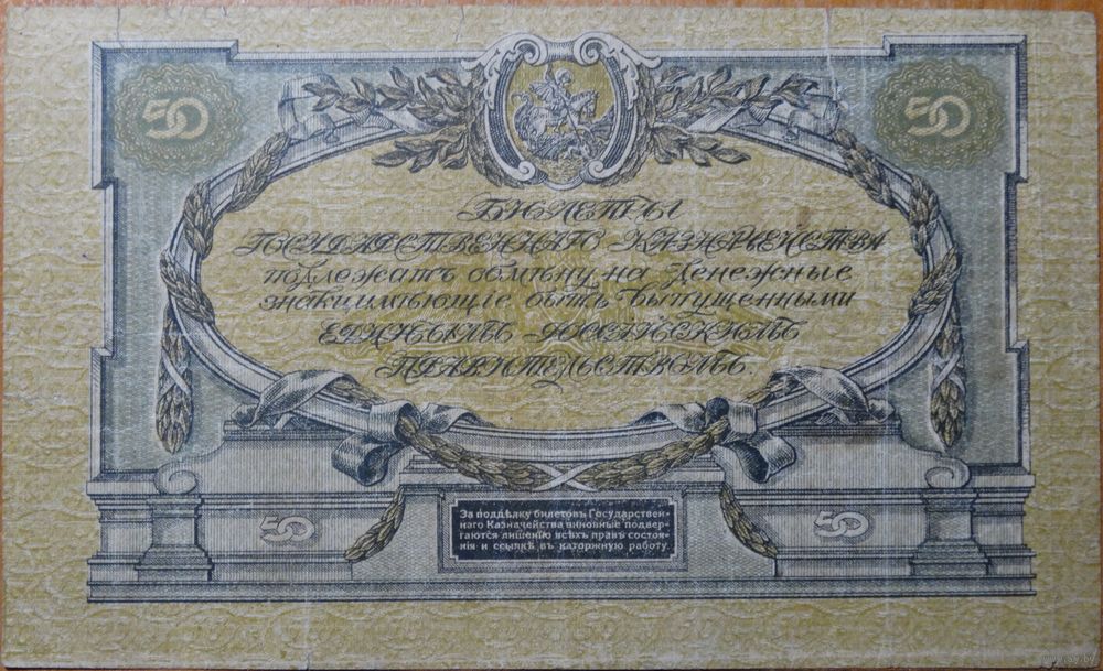 50 рублей 1919г. Казначейства Главного Командования Вооружёнными Силами на Юге России