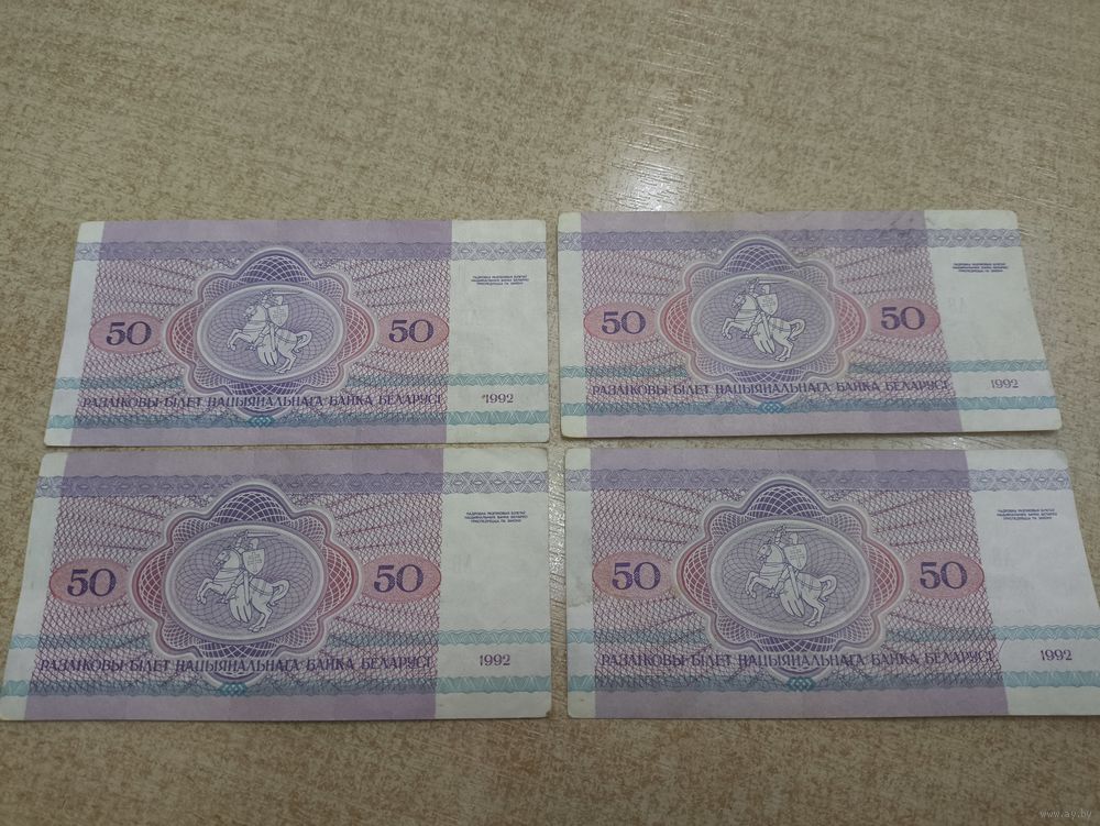 50 рублей 1992 года . Беларусь . серия АБ. 4 штуки