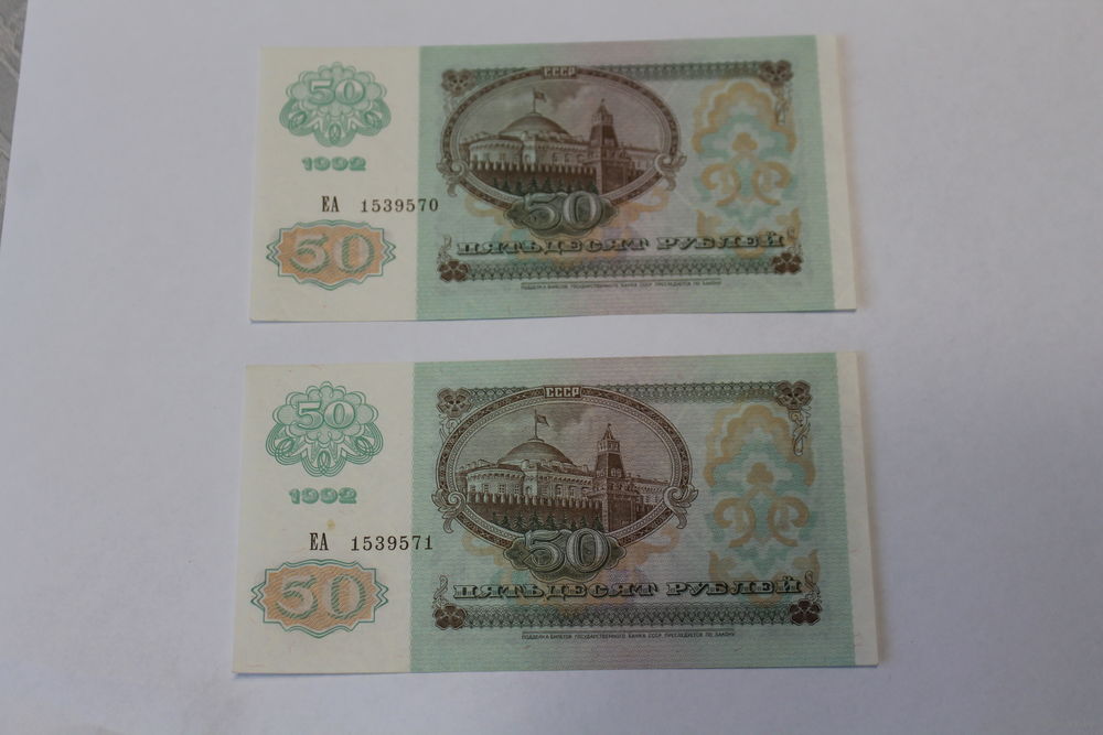 50 рублей 1992г. 2 номера подряд.