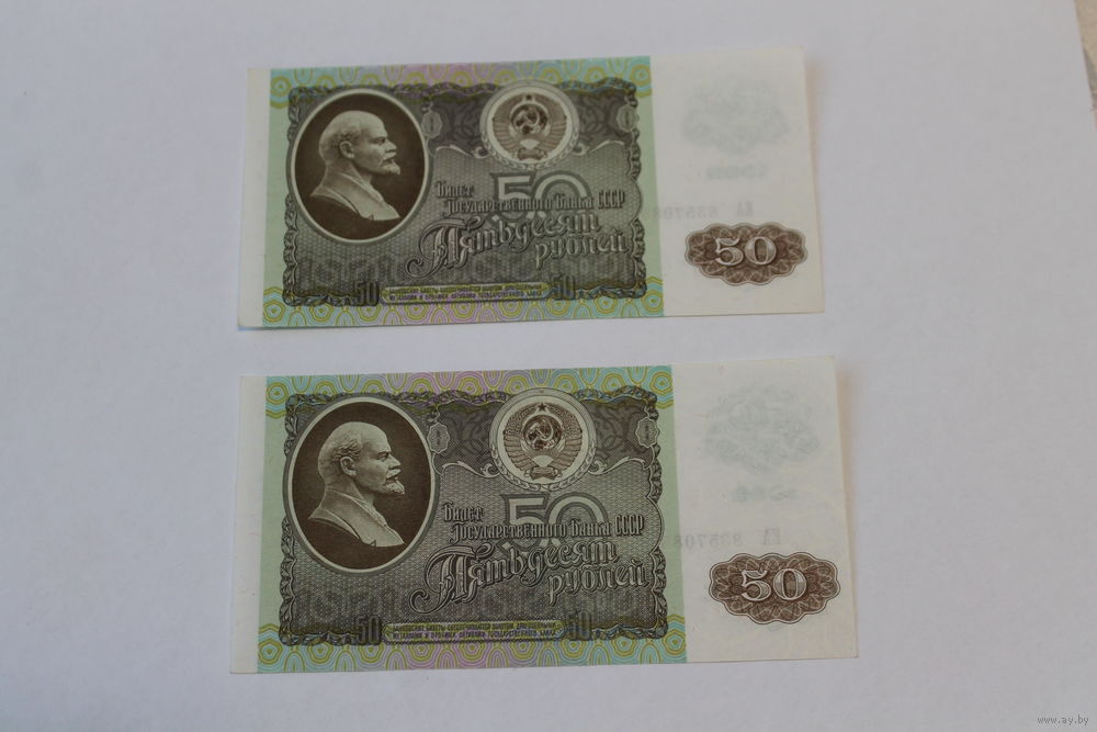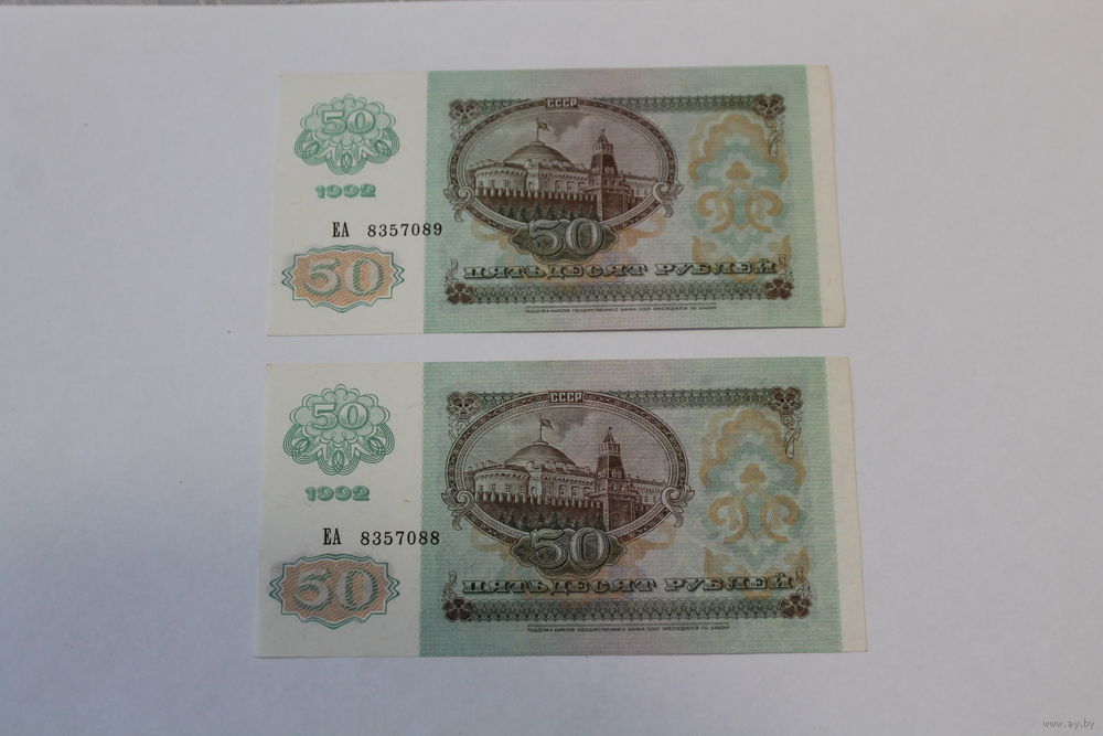 50 рублей 1992г. 2 номера подряд.