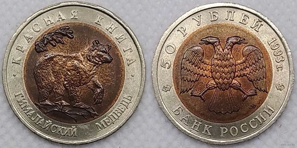 50 рублей 1993 г UNC Россия(РФ) Гималайский медведь, Красная книга