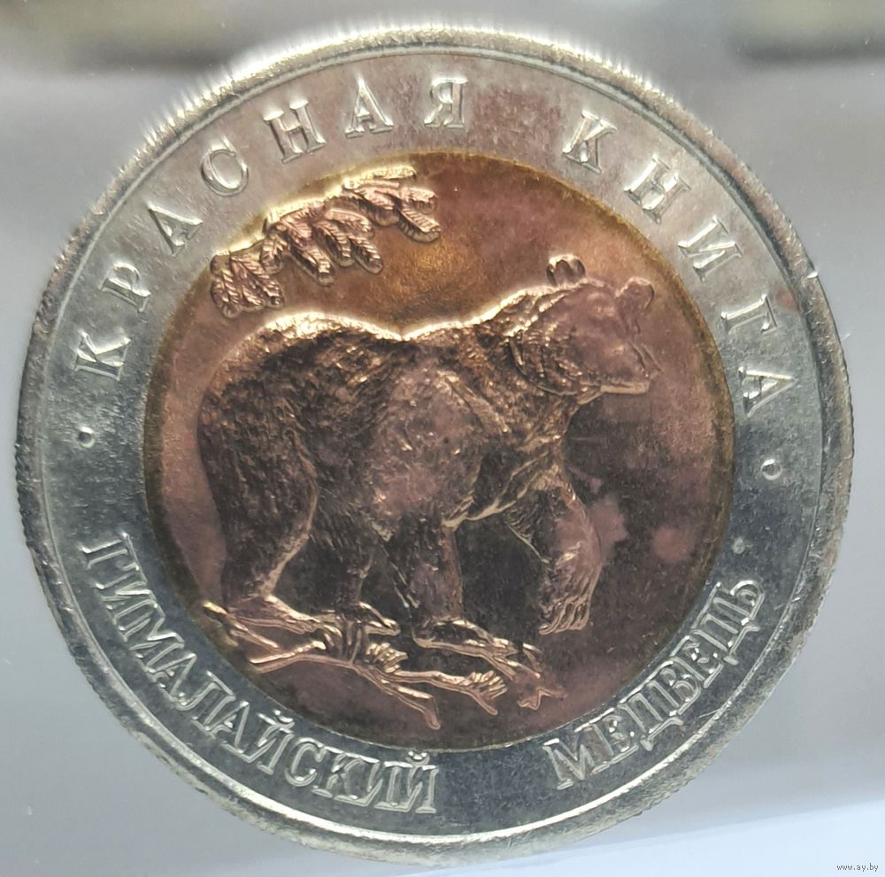50 рублей 1993 Гималайский медведь, Красная книга. Состояние UNC. Более 40 лотов с 1 рубля