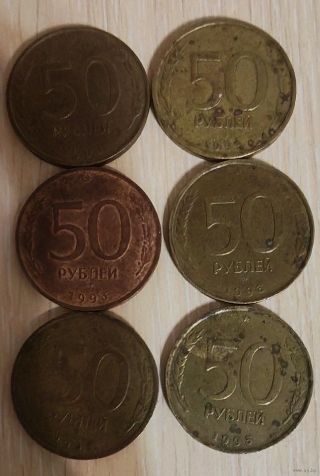 6 монет номиналом 50 рублей - 5 рублей