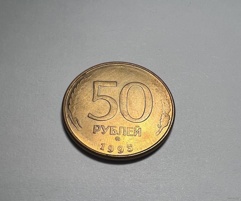 50 рублей ММД 1993 года. На реверса нет звёзды вверху. Очевидно непрочекан.