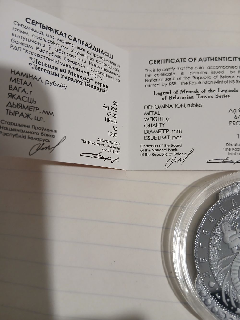 50 рублей Легенда о Менеске, сертификат есть, небольшое пятнышко, видно на третьем фото.