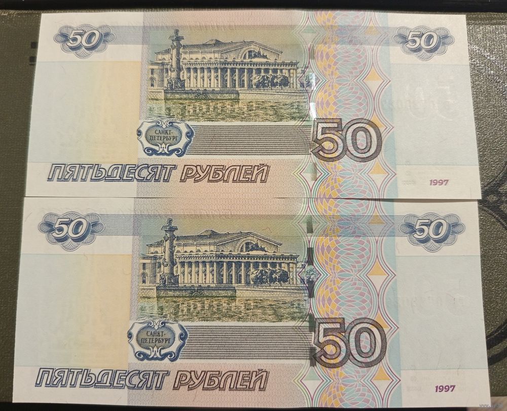 50 рублей Россия 1997 (2004) UNC, номера подряд гз 0723026-гз 07233027 (цена за все).