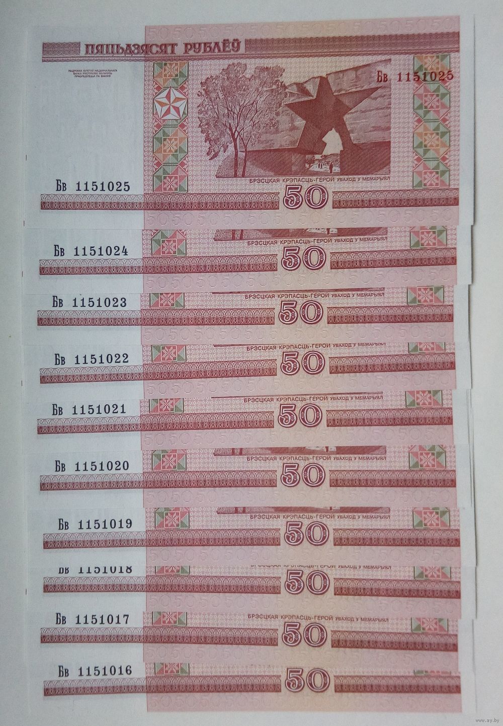 50 рублей серия Бв 10 штук подряд,Пресс,UNC!
