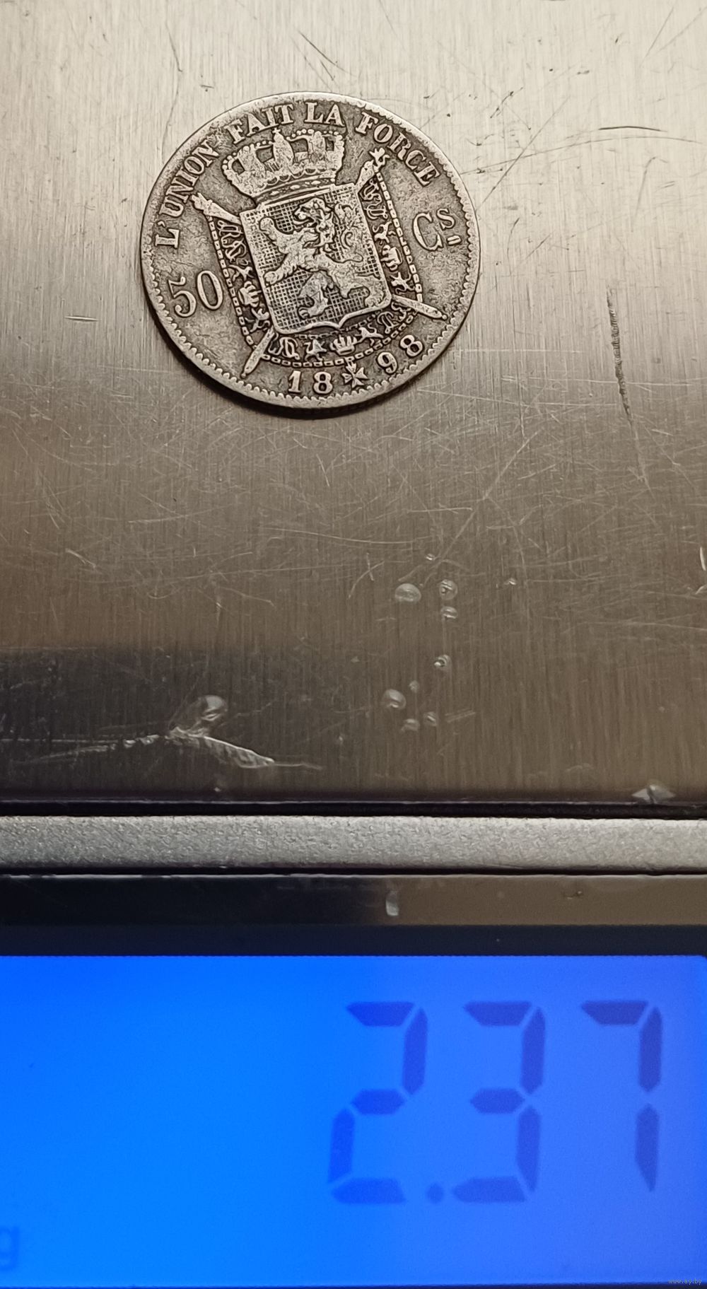 50 сантим 1898 г.835пр., Бельгия. ( Леопольд II). Тираж 501 т.