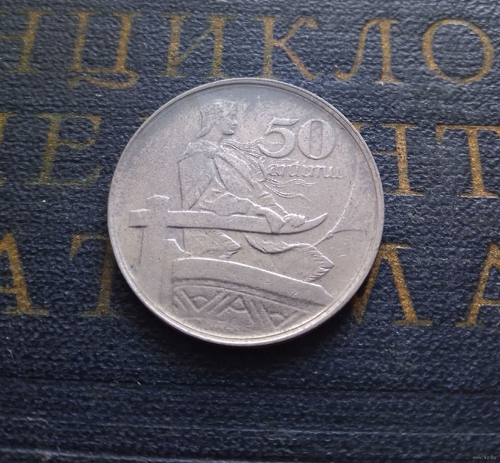 50 сантимов 1922 Латвия #01 XF Монета в родной патине!