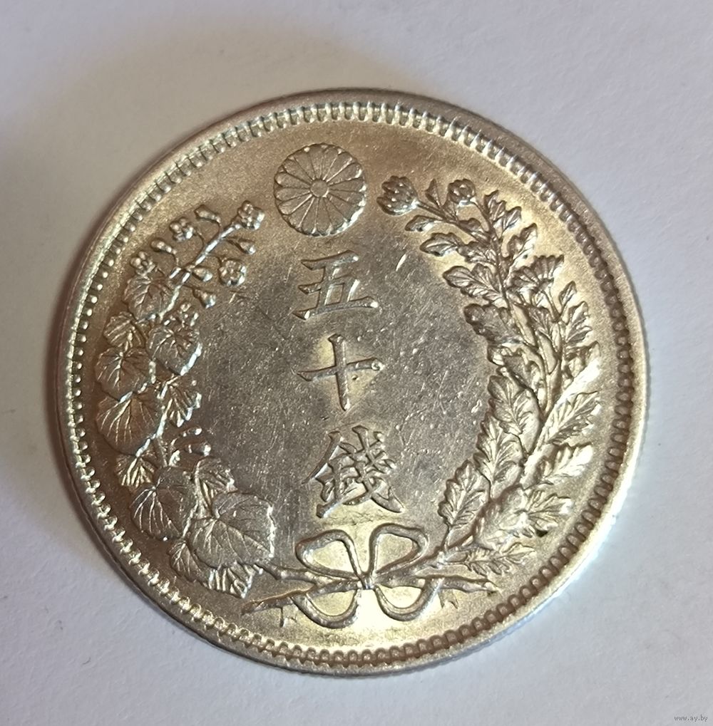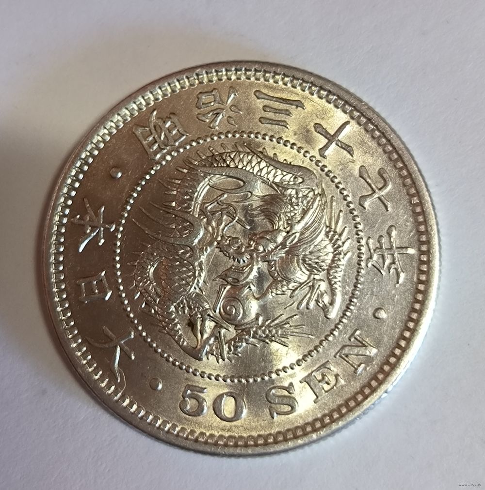 50 сен 1898 Япония серебро! Нечастая! В блеске! 19 век!