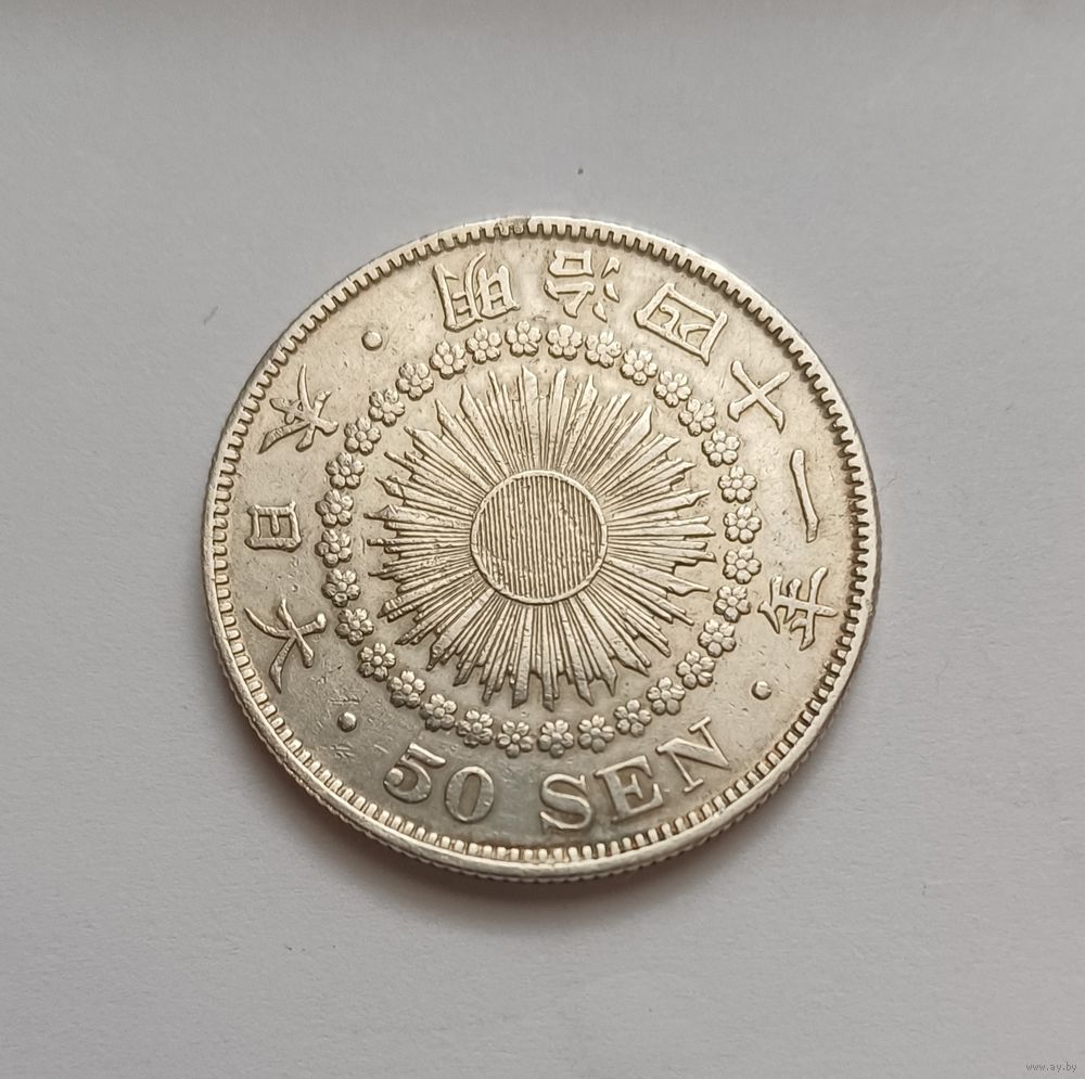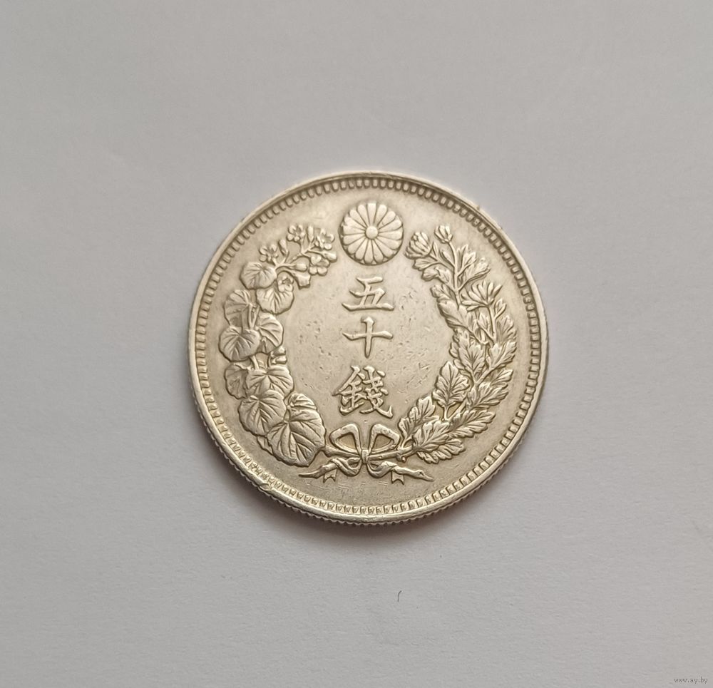 50 сенов. 1911г.800 пр., серебра. Япония . Муцухито (Мэйдзи) (1868 - 1912).