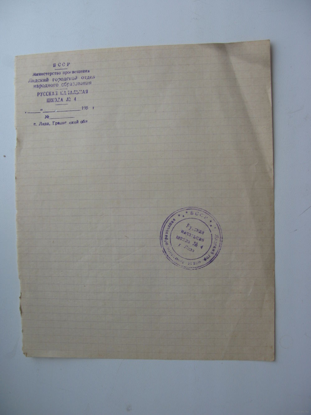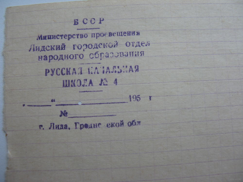 50 -ые годы . Школа . Чистый бланк . г. Лида