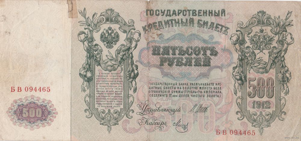 500 рублей. 1912 года. БВ