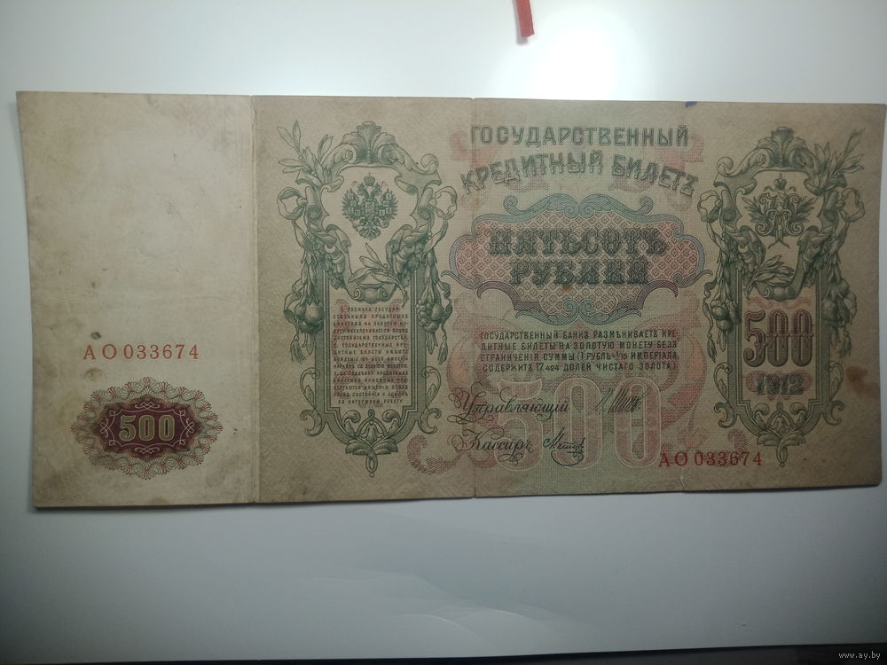 500 рублей 1912 года , Шипов - Метц , АО 047798 , Временное правительство .