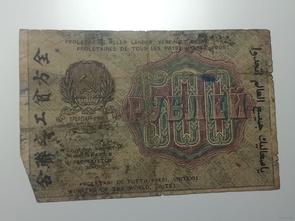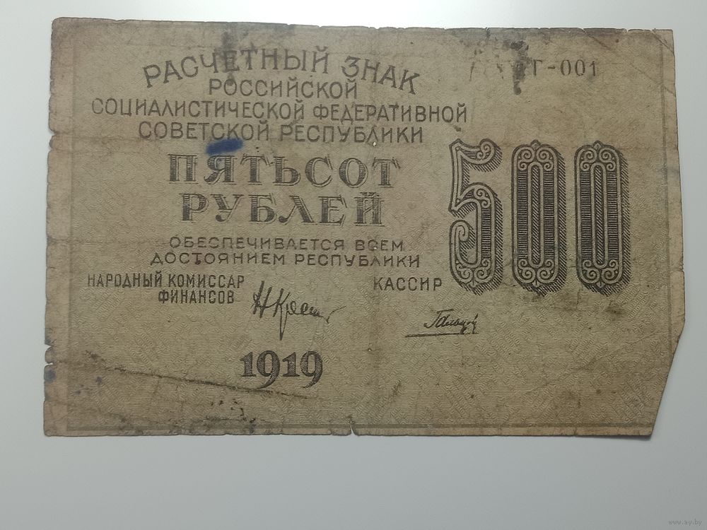 500 рублей 1919 года , Кассир Гальцов , Г - 001 ( интересный номер !!! ) .