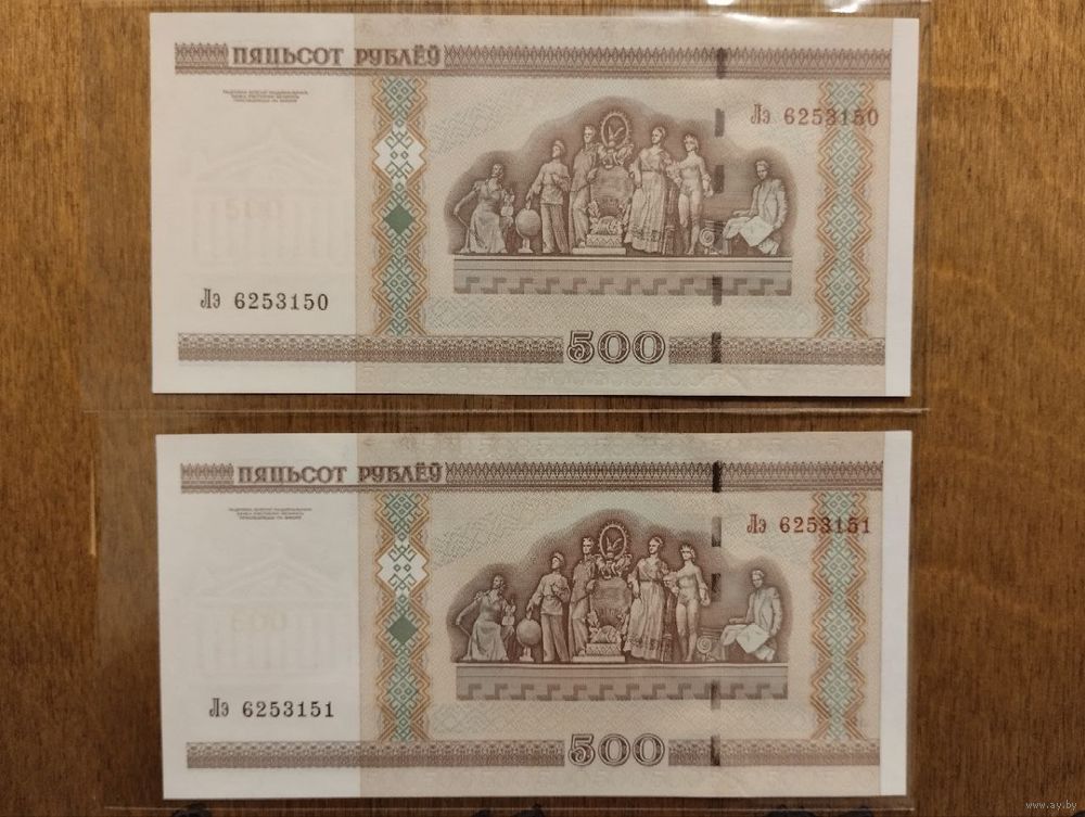 Беларусь 500 рублей 2000 года Серия Лэ 2 подряд