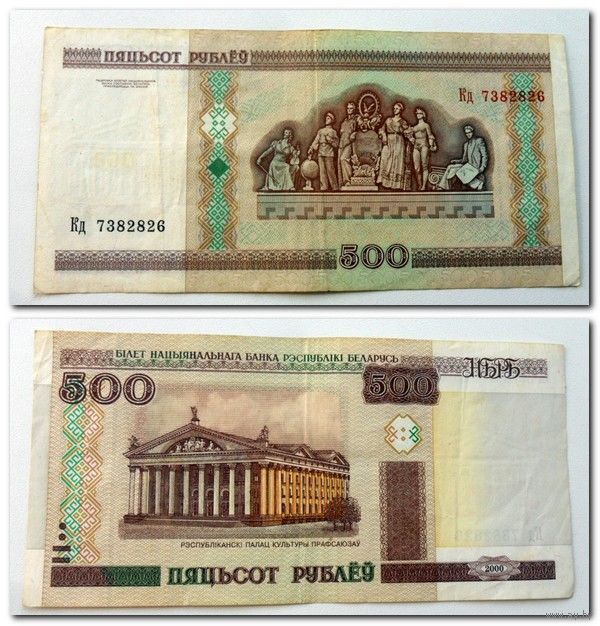 500 рублей РБ 2000 г.в. серия Кд - без модификации.