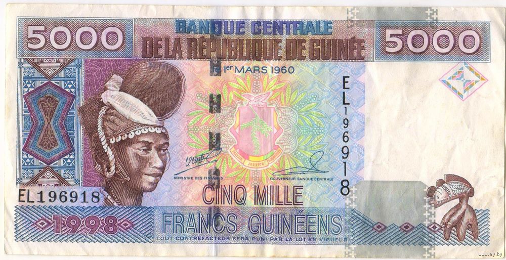 5000 франков 1998 год. Гвинея. Состояние VF!