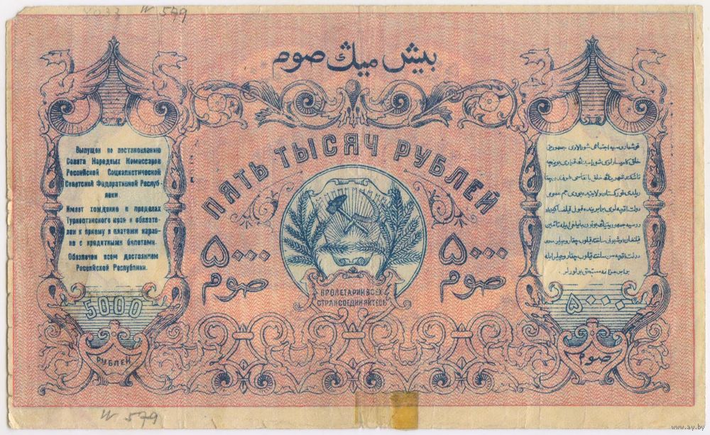 5000 рублей 1920 год. Туркестан. Туркестанский край. РЕДКАЯ!!!