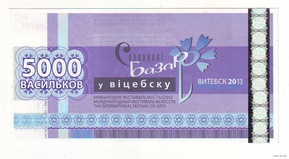 5000 васильков 2013 г. ( Деньги Славянского базара в Витебске ) - состояние !