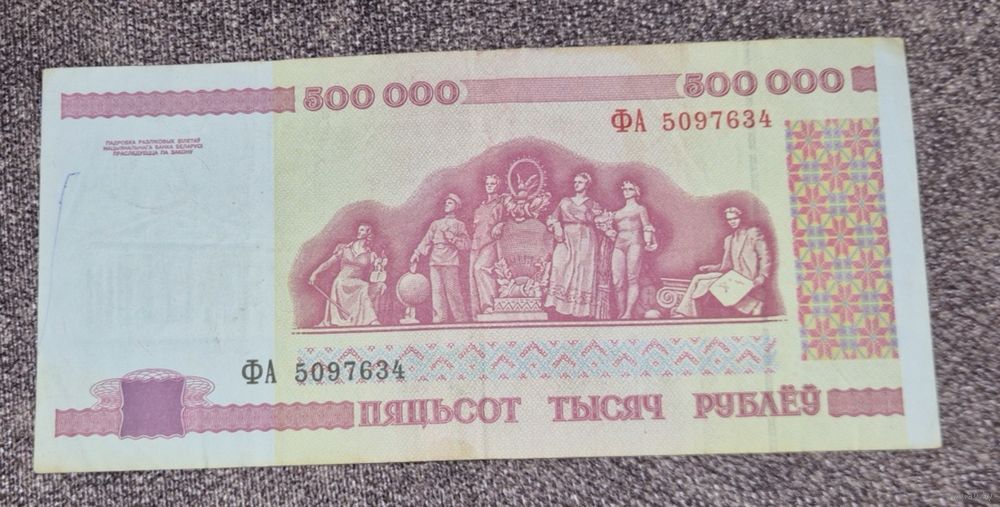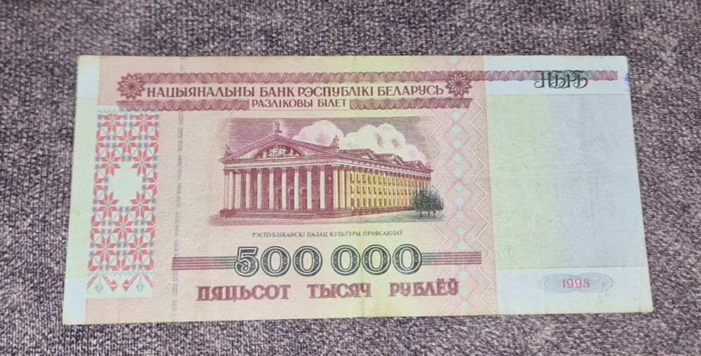 Банкнота 500000 белорусских рублей, очевидно что страна - Беларусь. Легендарная банкнота для белорусского народа, которую Вы сможете получить в свою коллекцию. Не забывайте кстати смотреть другие мои лоты на аукционе, там достаточно интересного, просто поверьте и гляньте, может Вам что-то понравится)