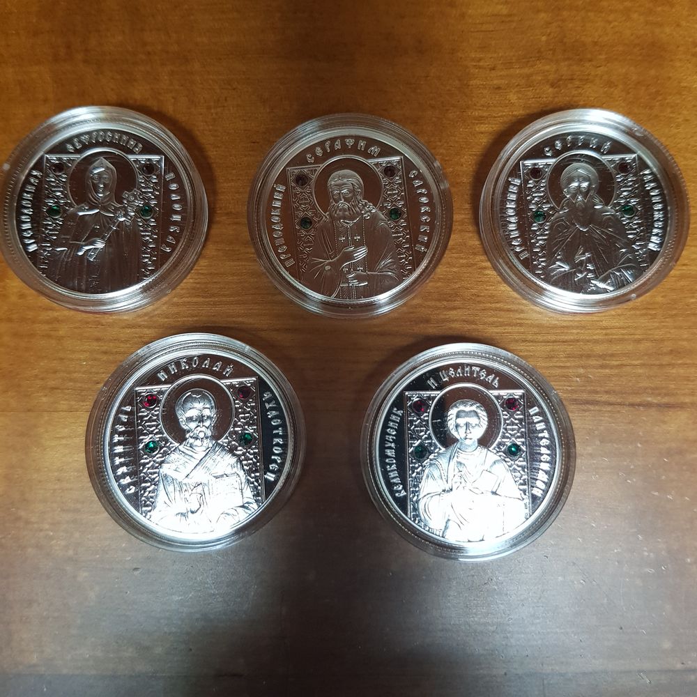 509. Православные святые 5*20 рублей комплект, 2013 г. Преподобные Ефросиния Полоцкая, Серафим Саровский, Сергий Радонежский, Святитель Николай Чудотворец, Великомученик и целитель Пантелеймон