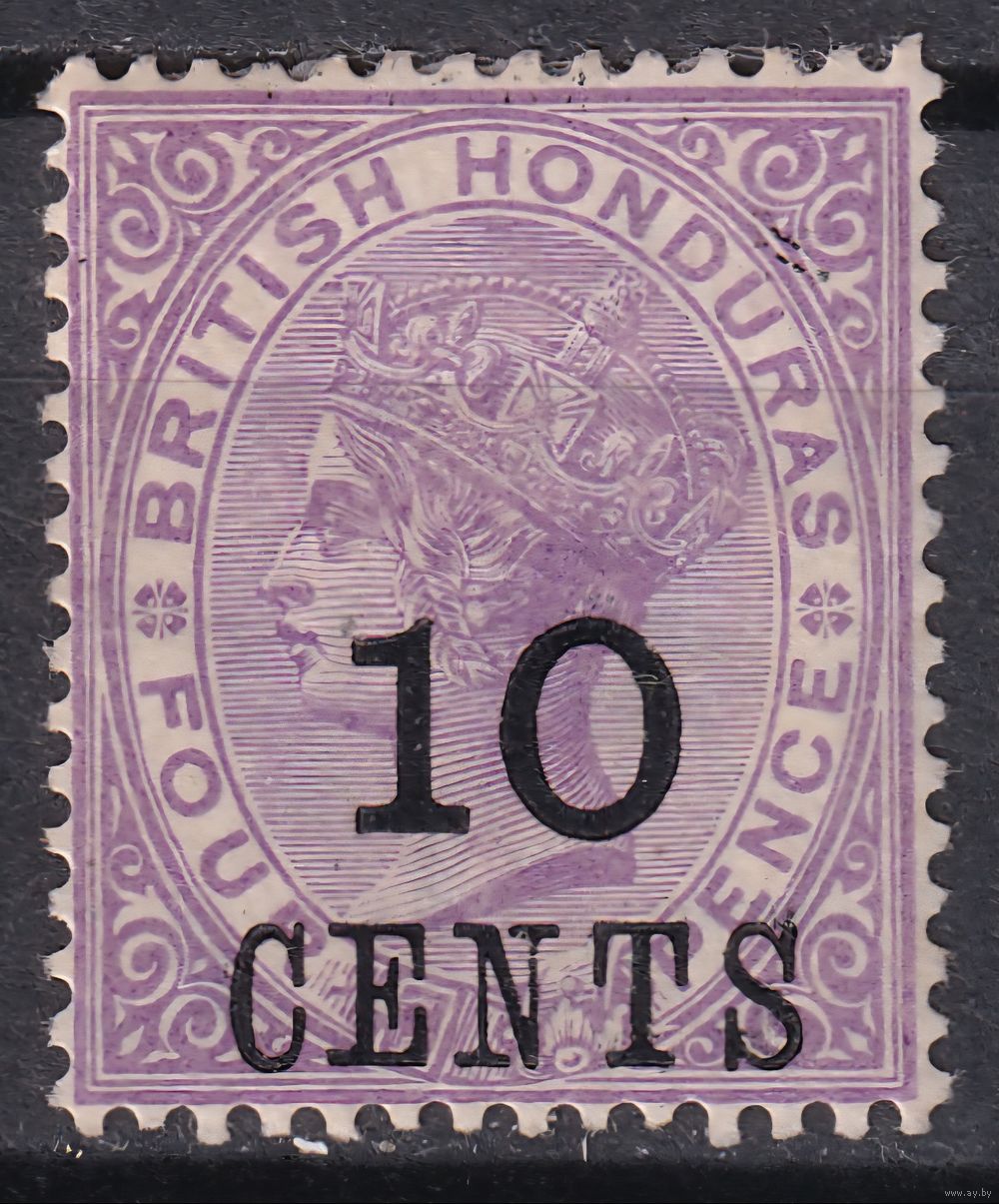 53.BrKCI. Великобритания. Колонии. Британский Гондурас. Стандарт. Виктория. Надпечатка нового номинала. 1888 г. 10C. Mi.#23.