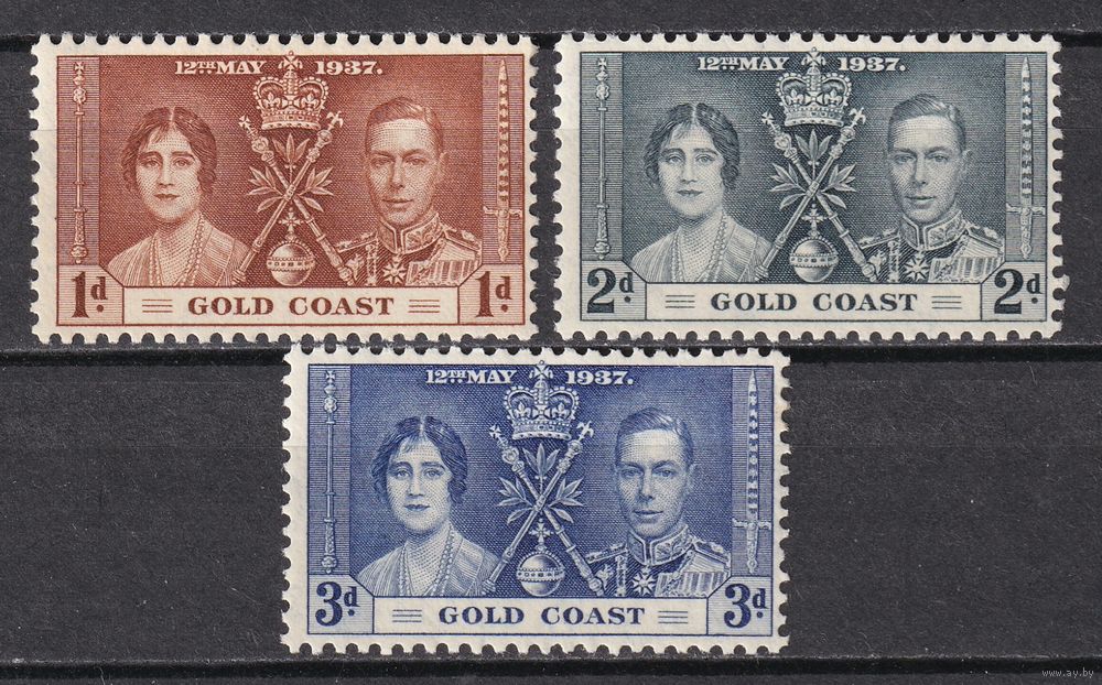 Золотой Берег. Коронация Георга VI и Елизаветы. 1937 г. Полная серия. Mi.##102-104. MNH ( без наклейки или следов).