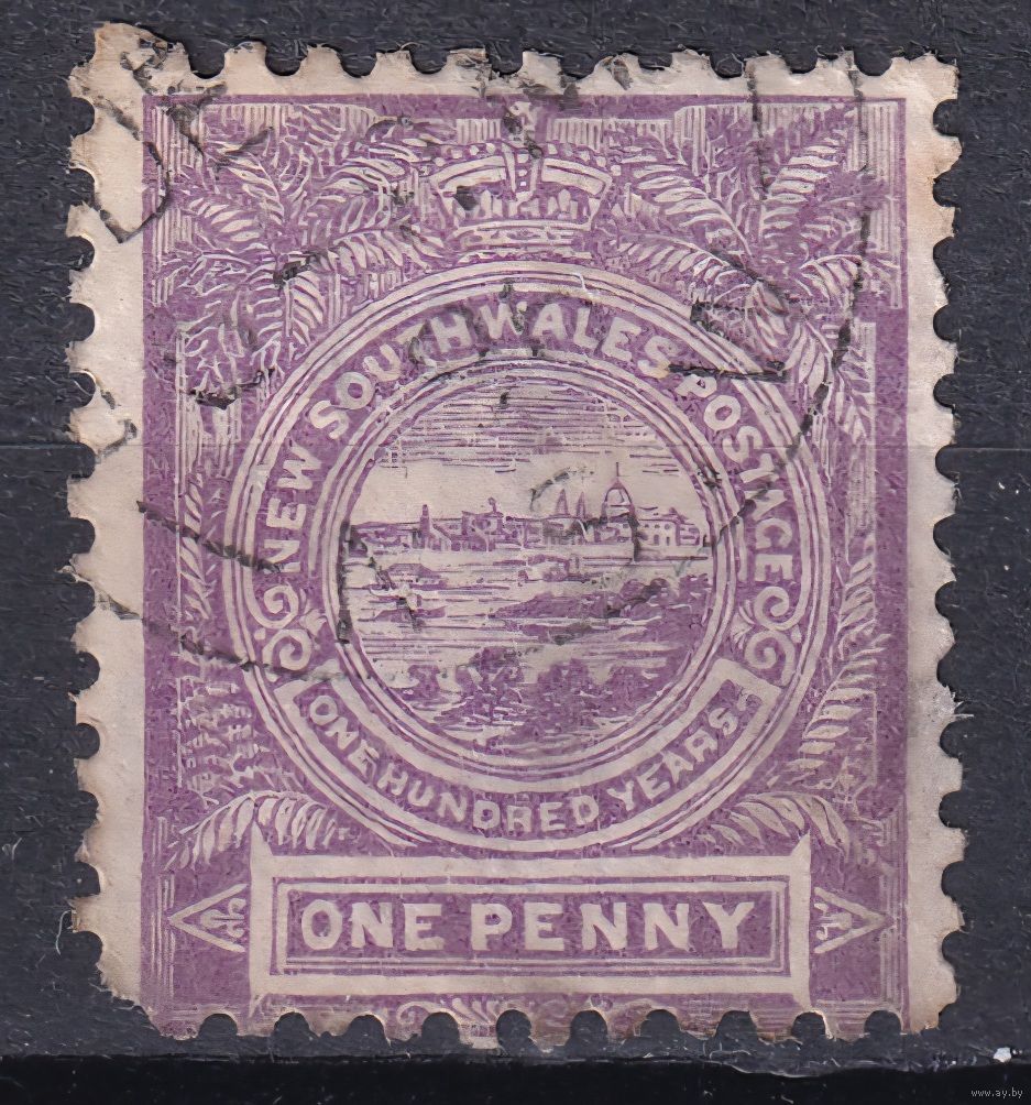 57.Aust. Великобритания. Австралийские штаты. Новый Южный Уэльс. Вид на Сидней. Стандарт. 1888 г. 1p. Mi.#63.
