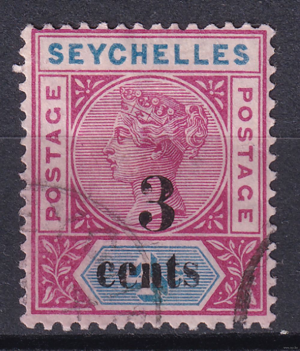 57.BrKSe. Великобритания. Колонии. Сейшельские острова. Виктория. Стандарт. Надпечатка нового номинала. 3C. 1893 г. Mi.#9.