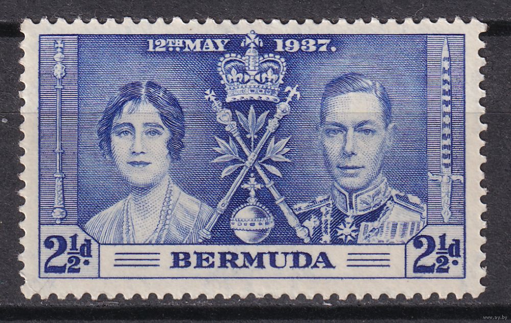 6.BrKS. Великобритания. Колонии. Бермуды. Коронация Георга VI и Елизаветы. 1937 г. 2 1/2d. Mi.#100.