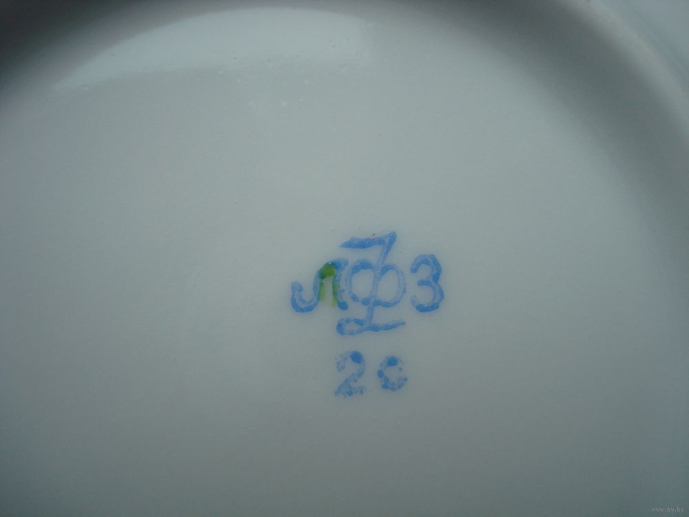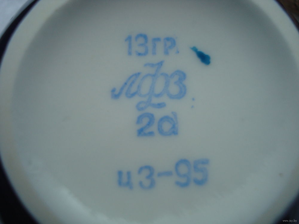 • На чашках - синее клеймо ЛФЗ и 13гр.  стоит цена 3-95, на блюдцах - синее клеймо ЛФЗ.
