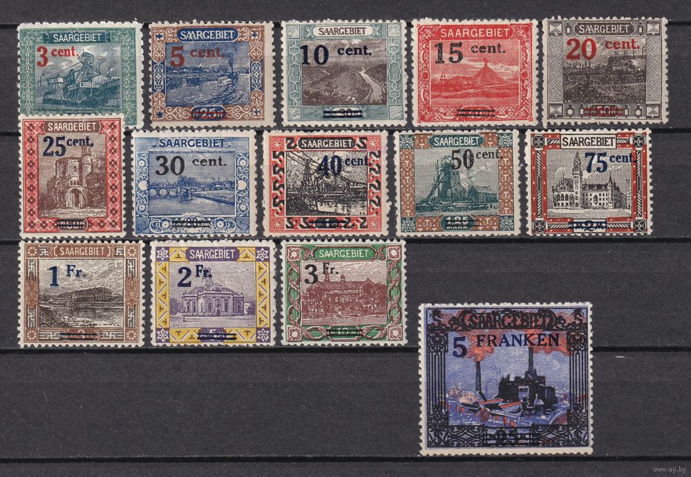 6.DS. Германия. Саар. Местные мотивы. Надпечатка нового номинала. 1921 г. Полная серия. Mi.##70A-83(*). Цена каталога 80€.