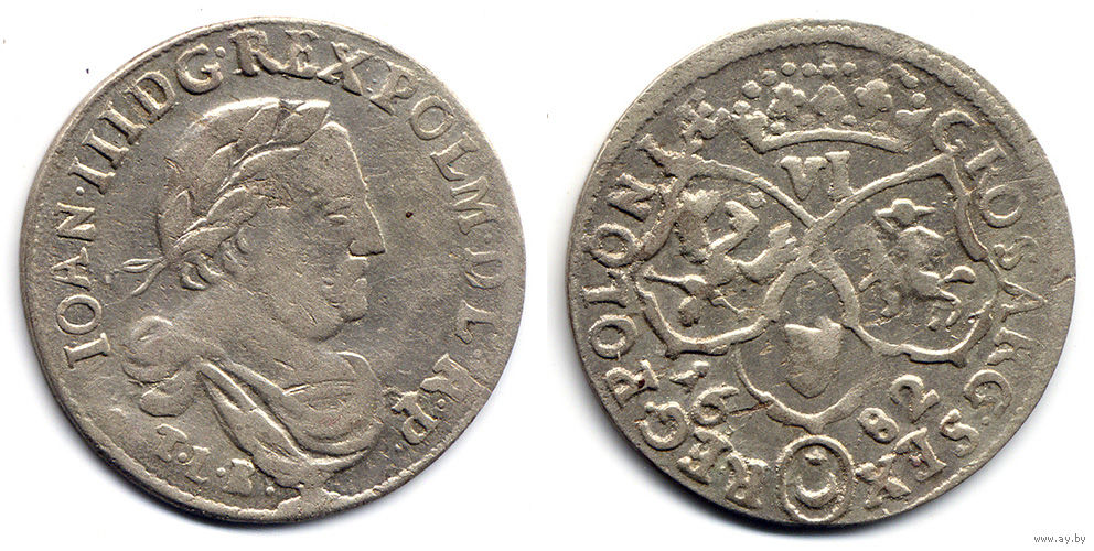 Ав: бюст в лавровом венке и античной тоге, Рв - герб Лелива, фигурные щиты.