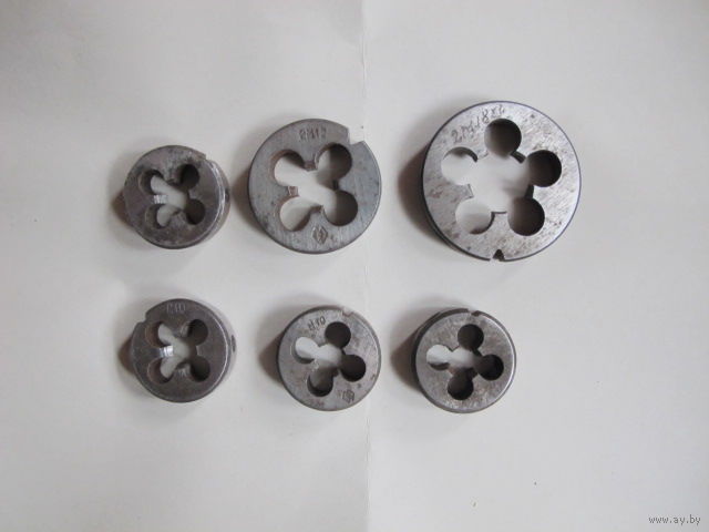 Четыре плашки М10 (30 мм), одна 2m18x2 (45 мм), одна 2m12 (38 мм). Цена за лот